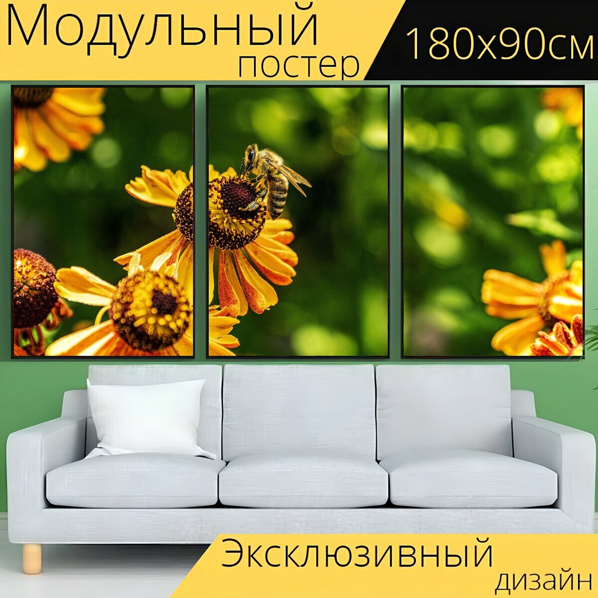 Модульный постер "Цветок, пчела, насекомые" 180 x 90 см. для интерьера информация: