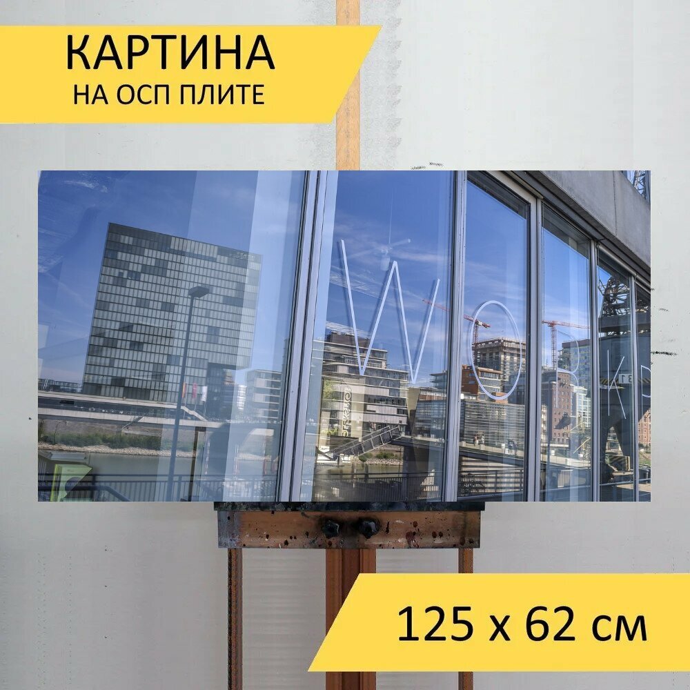 Картина на ОСП 125х62 см. "Архитектура, строительство, линия горизонта" горизонтальная, для интерьера, с креплениями информация: