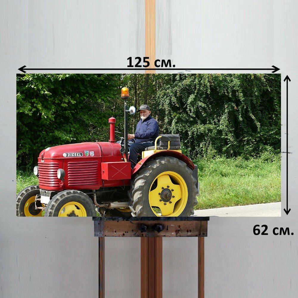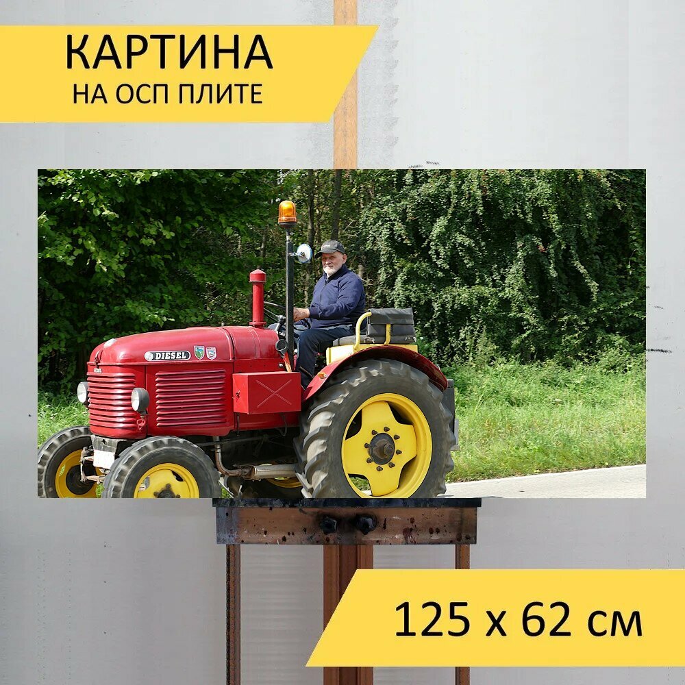 Отзывы на Картина на ОСП 125х62 см. "Трактор, сельскохозяйственная техника, пастбище" горизонтальная, для интерьера, с креплениями