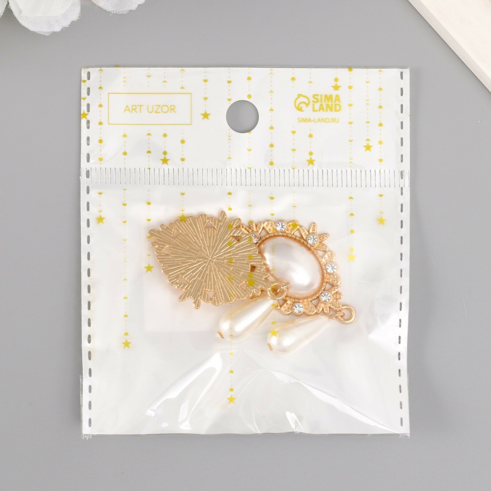 10 цен на Декор для творчества металл, пластик "Жемчужина в цветах с подвеской" 5,4х2,5х0,7 см