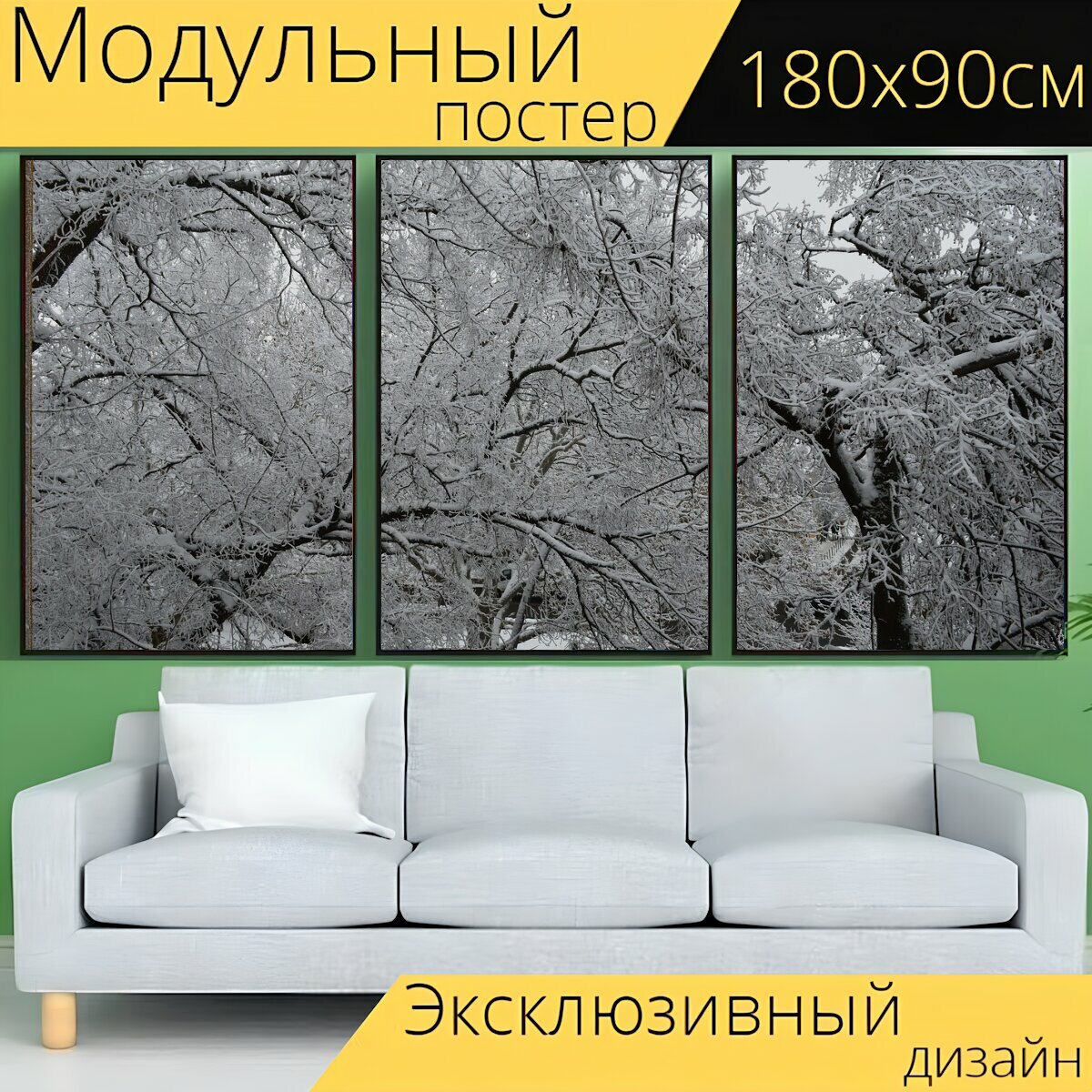 Модульный постер "Зима, холодный, снег" 180 x 90 см. для интерьера информация: