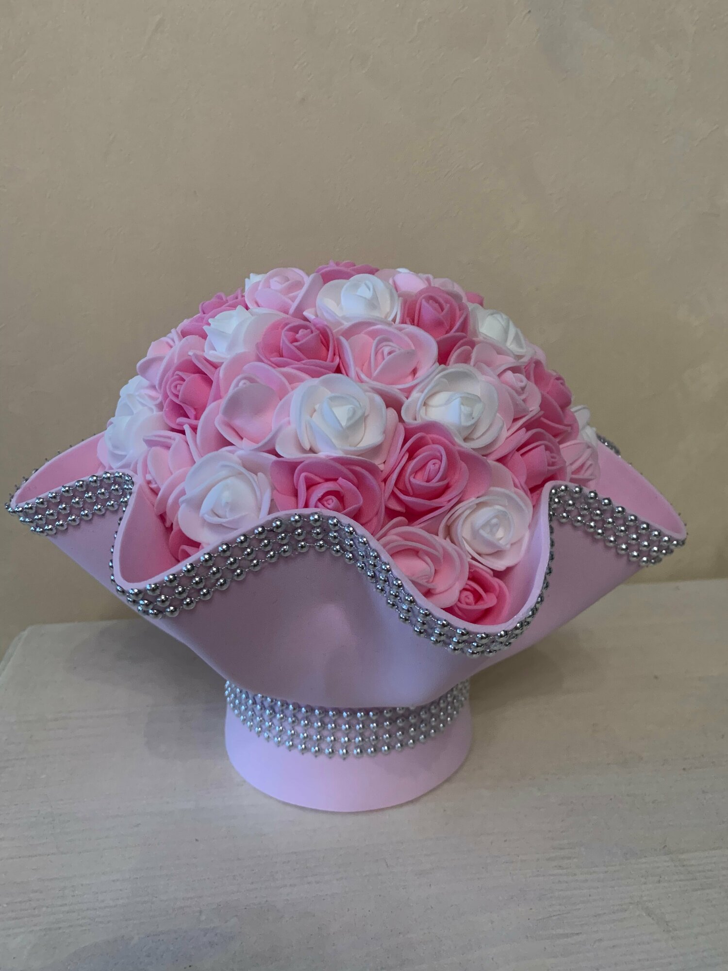 10 цен на Букет-ночник розовый, 3х цв. с розовыми, белыми, св.розовыми розами
