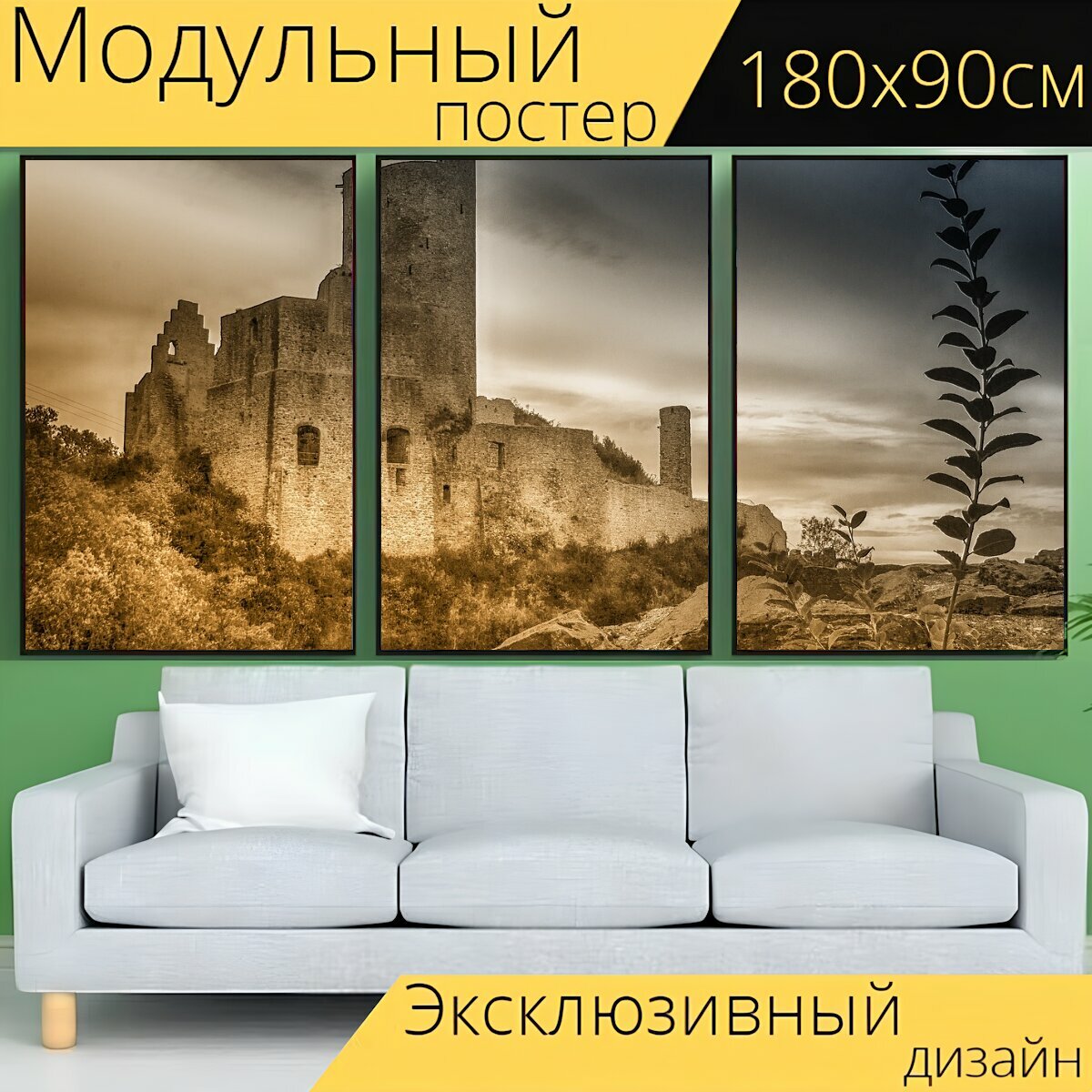 Модульный постер "Замок, монреаль, рейнланд пфальц" 180 x 90 см. для интерьера информация:
