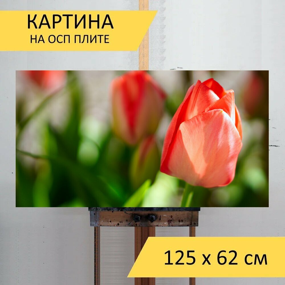 10 цен на Картина на ОСП 125х62 см. "Тюльпаны, цвести, весна" горизонтальная, для интерьера, с креплениями