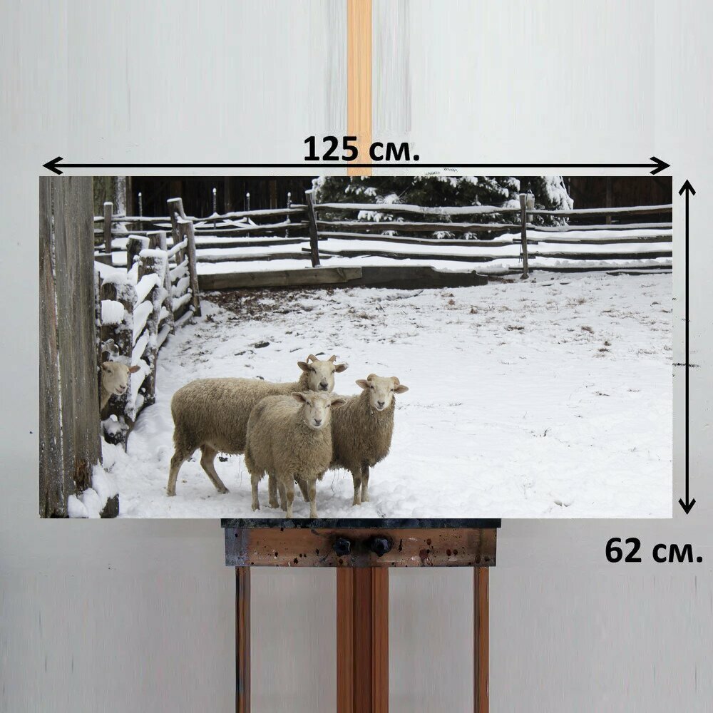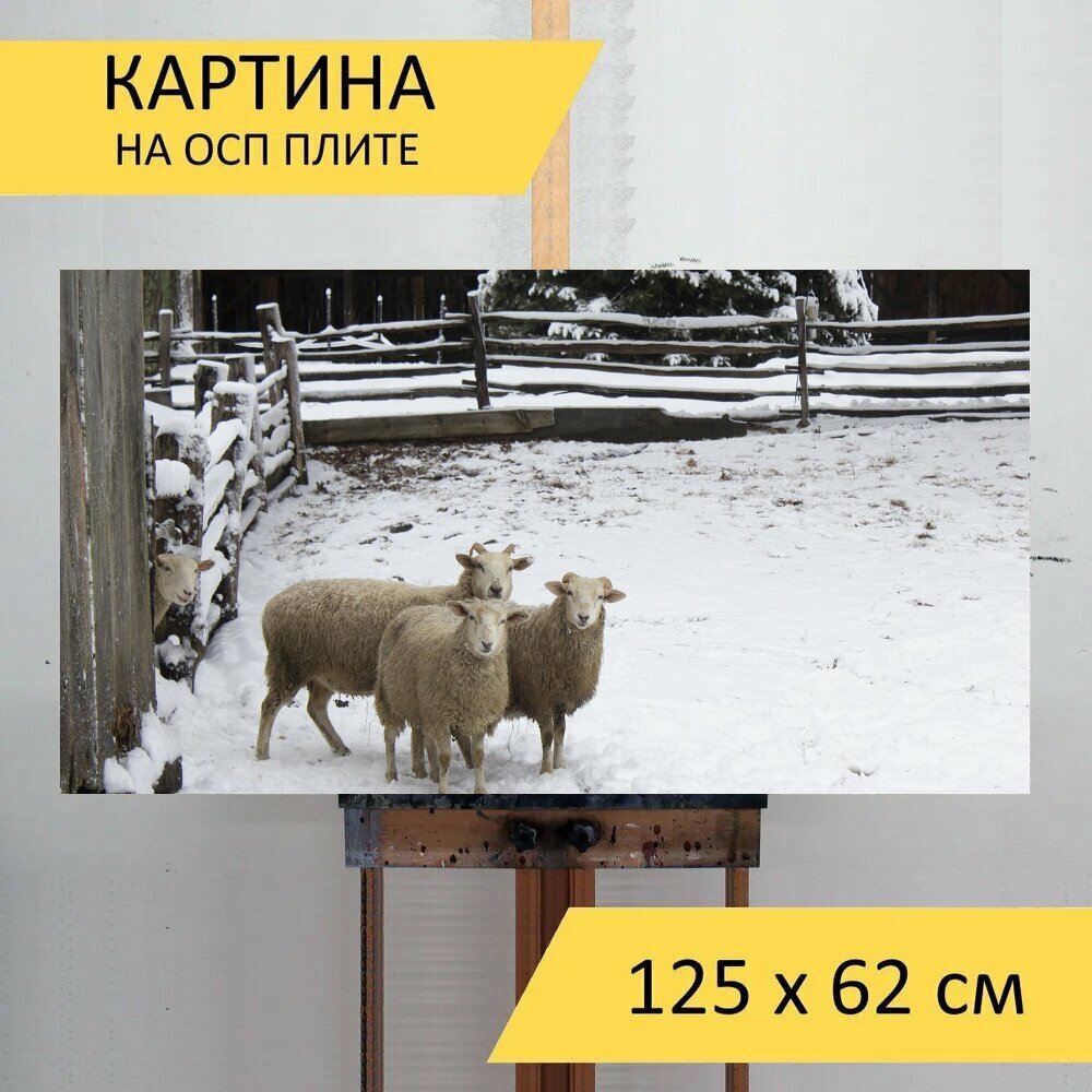 Отзывы на Картина на ОСП 125х62 см. "Овец, зима, снег" горизонтальная, для интерьера, с креплениями