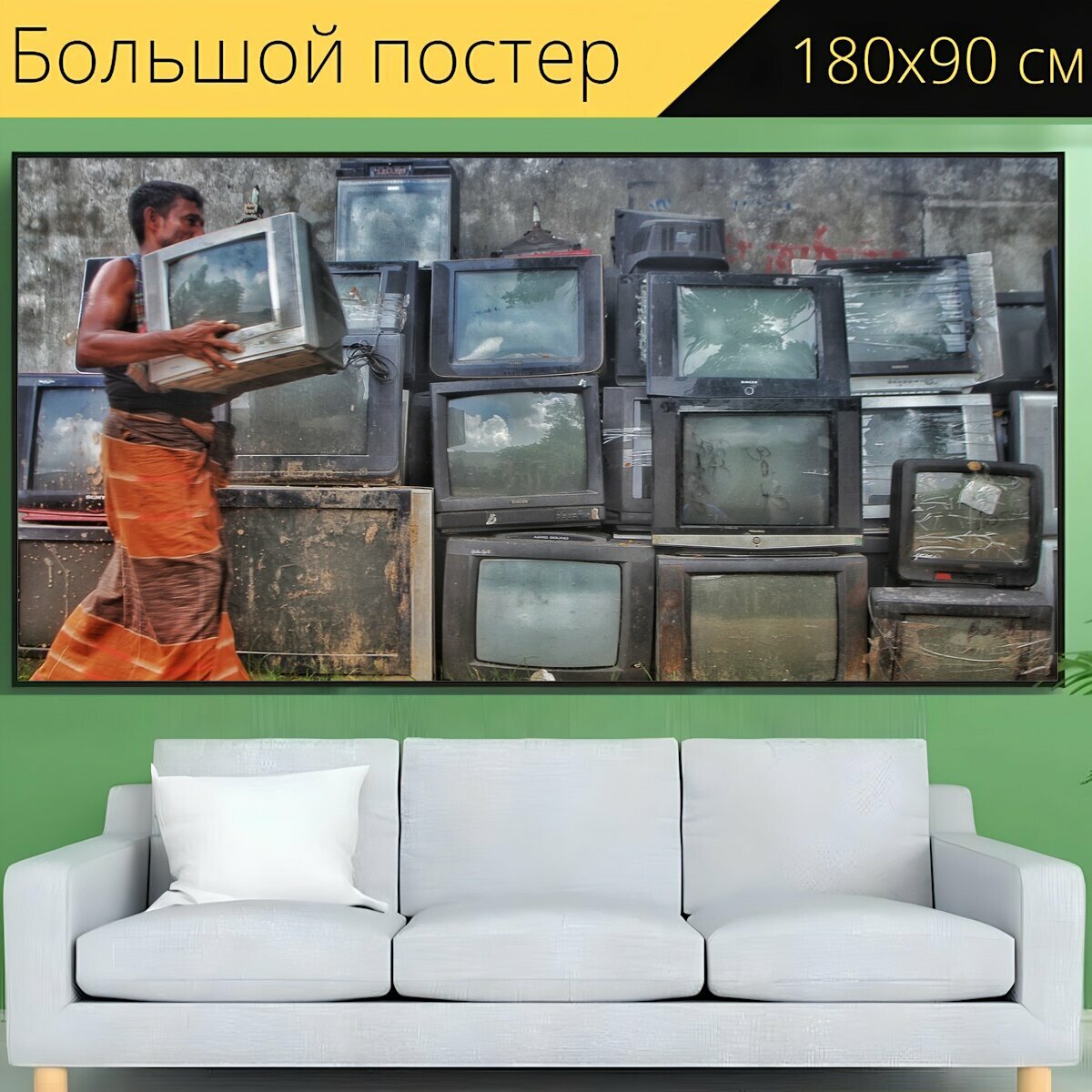 Большой постер "Электронные отходы, управление электронными отходами дакка, бангладеш" 180 x 90 см. для интерьера информация: