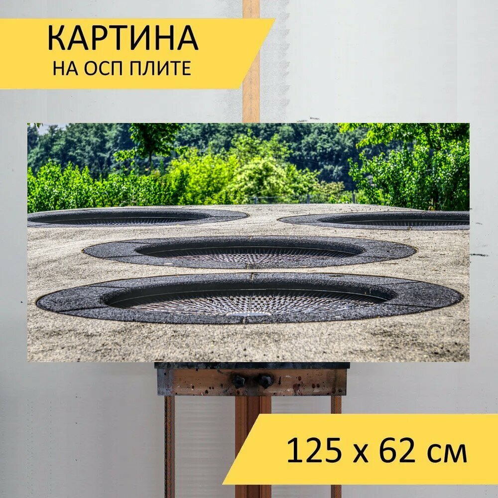 Отзывы на Картина на ОСП 125х62 см. "Батут, прыгнуть, свободное время" горизонтальная, для интерьера, с креплениями