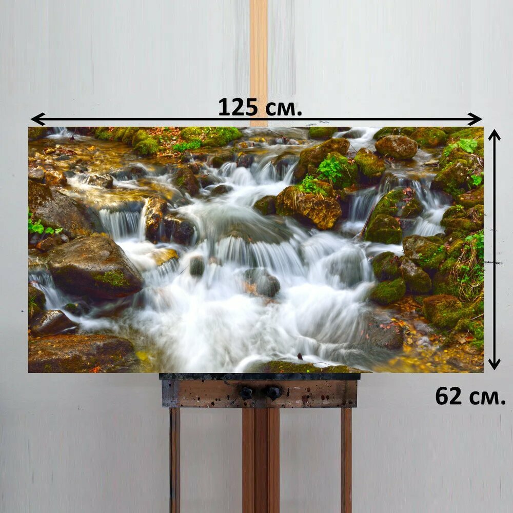Картина на ОСП 125х62 см. "Водопад, ручей, природа" горизонтальная, для интерьера, с креплениями информация: