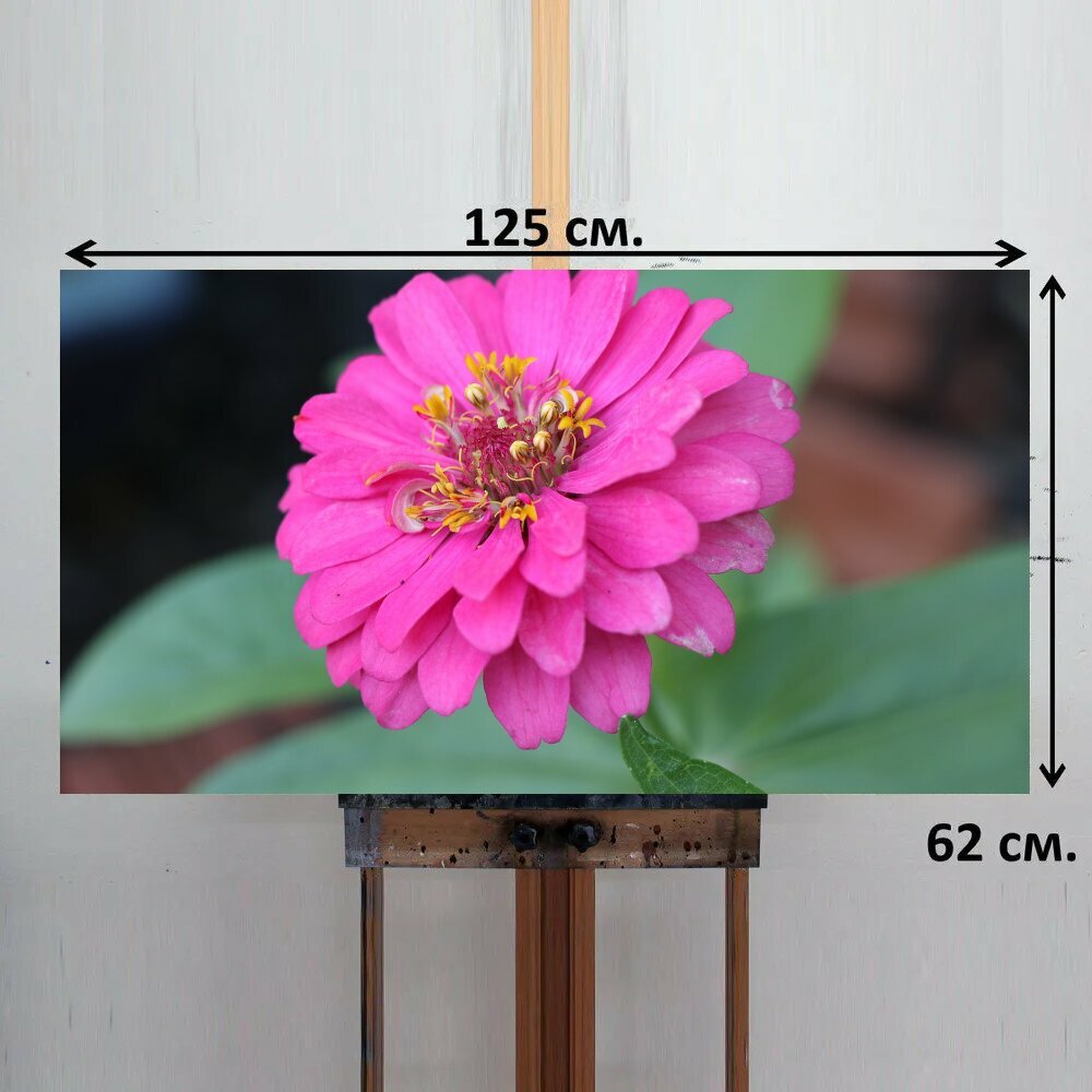 Картина на ОСП 125х62 см. "Розовый дейзи цветок, весна, желтый" горизонтальная, для интерьера, с креплениями информация: