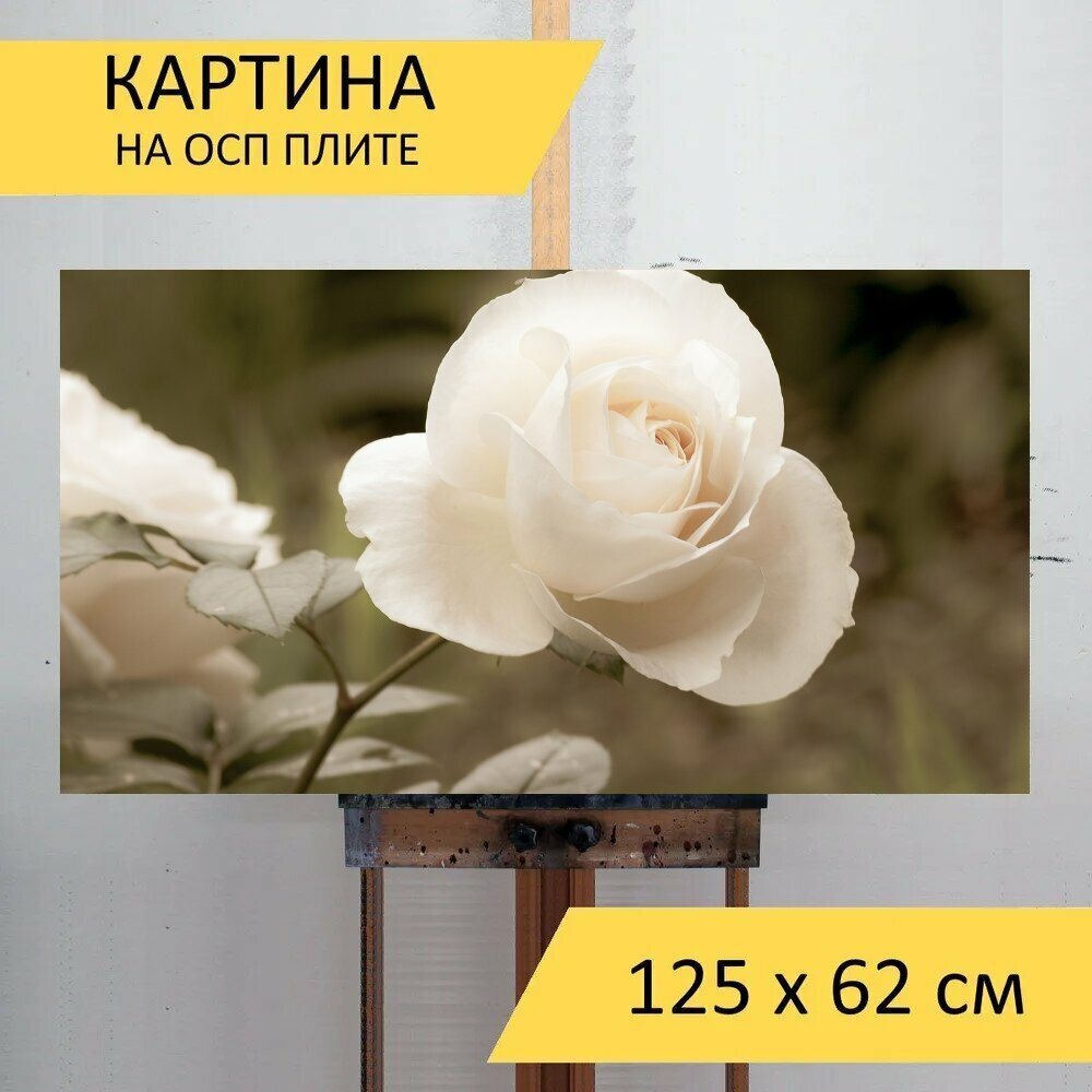 Отзывы на Картина на ОСП 125х62 см. "Роза, завод, декоративное растение" горизонтальная, для интерьера, с креплениями