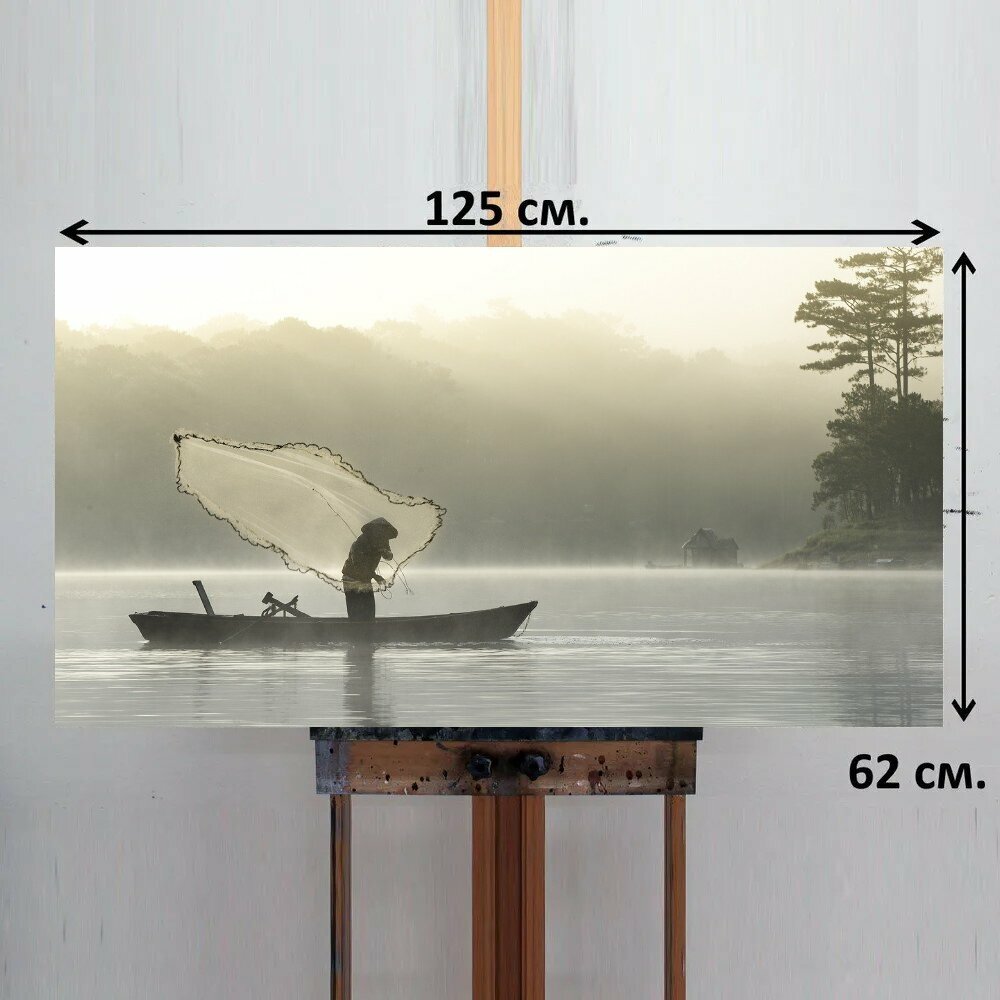 Картина на ОСП 125х62 см. "Рыбак, ловит рыбу, озеро" горизонтальная, для интерьера, с креплениями информация: