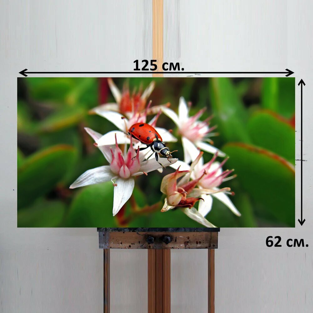 Отзывы на Картина на ОСП 125х62 см. "Божья коровка, жук, цветы" горизонтальная, для интерьера, с креплениями