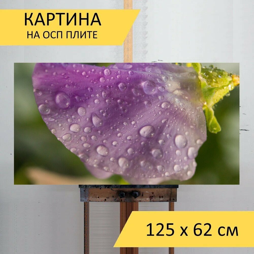Картина на ОСП 125х62 см. "Цветок, лепестки, роса" горизонтальная, для интерьера, с креплениями информация: