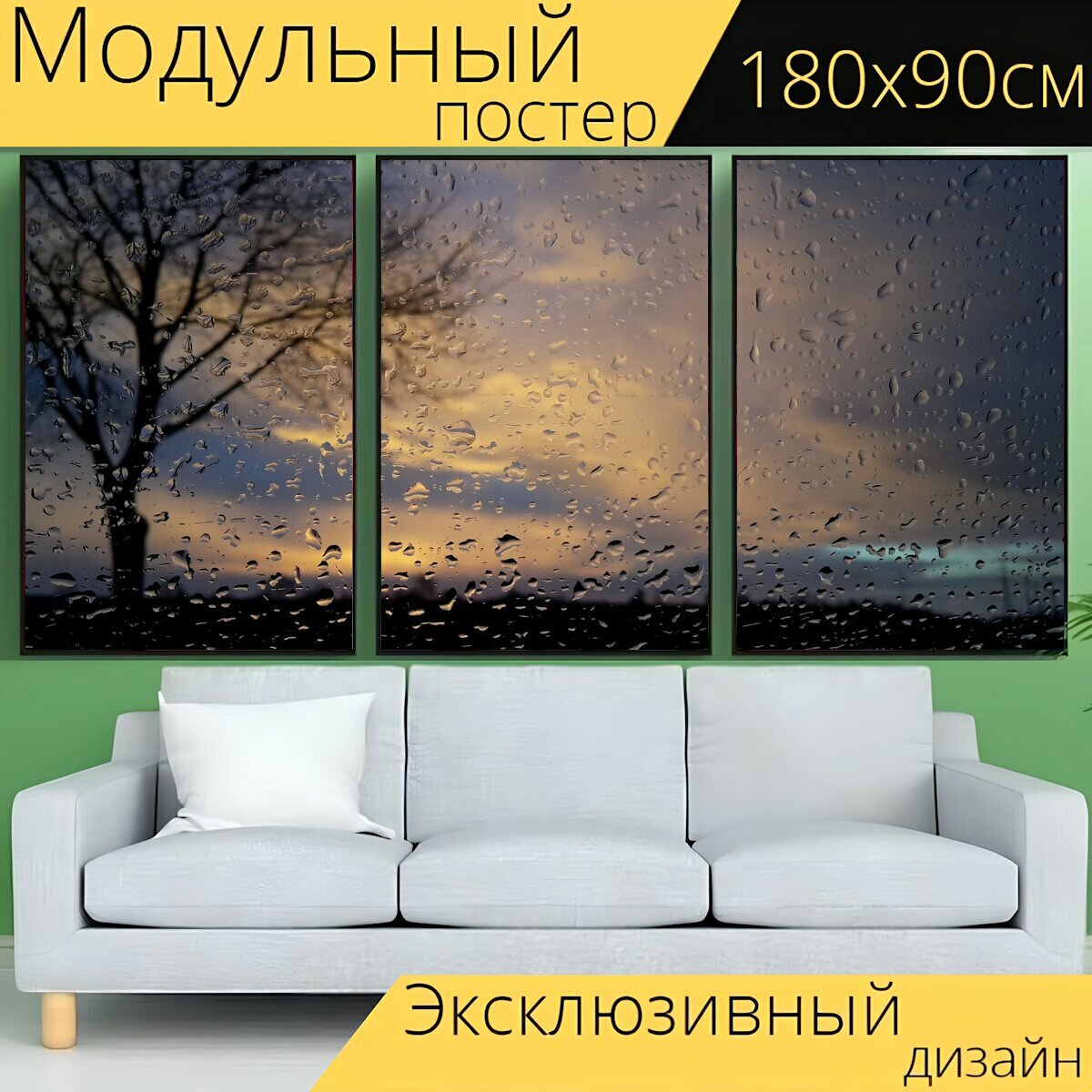 10 цен на Модульный постер "Капля дождя, диск, капля воды" 180 x 90 см. для интерьера