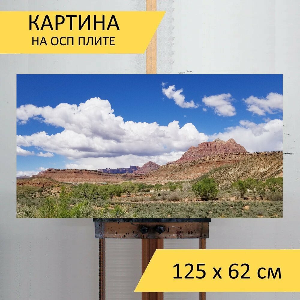 Картина на ОСП 125х62 см. "Юта, горные породы, пейзаж" горизонтальная, для интерьера, с креплениями информация: