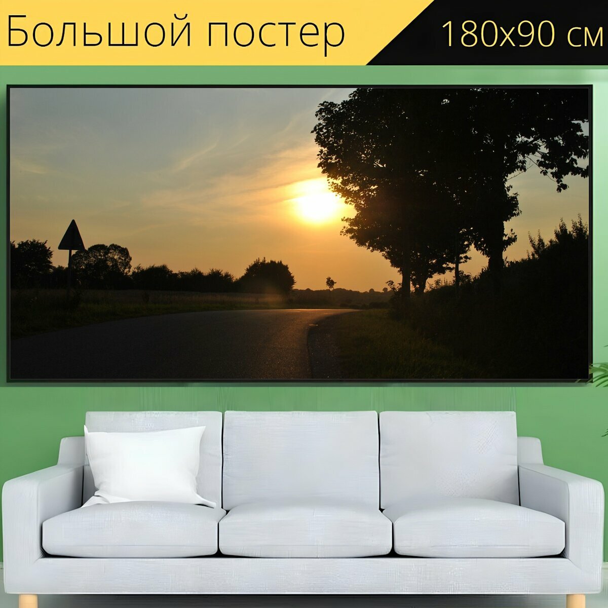Большой постер "Заход солнца, силуэт, пейзаж" 180 x 90 см. для интерьера информация: