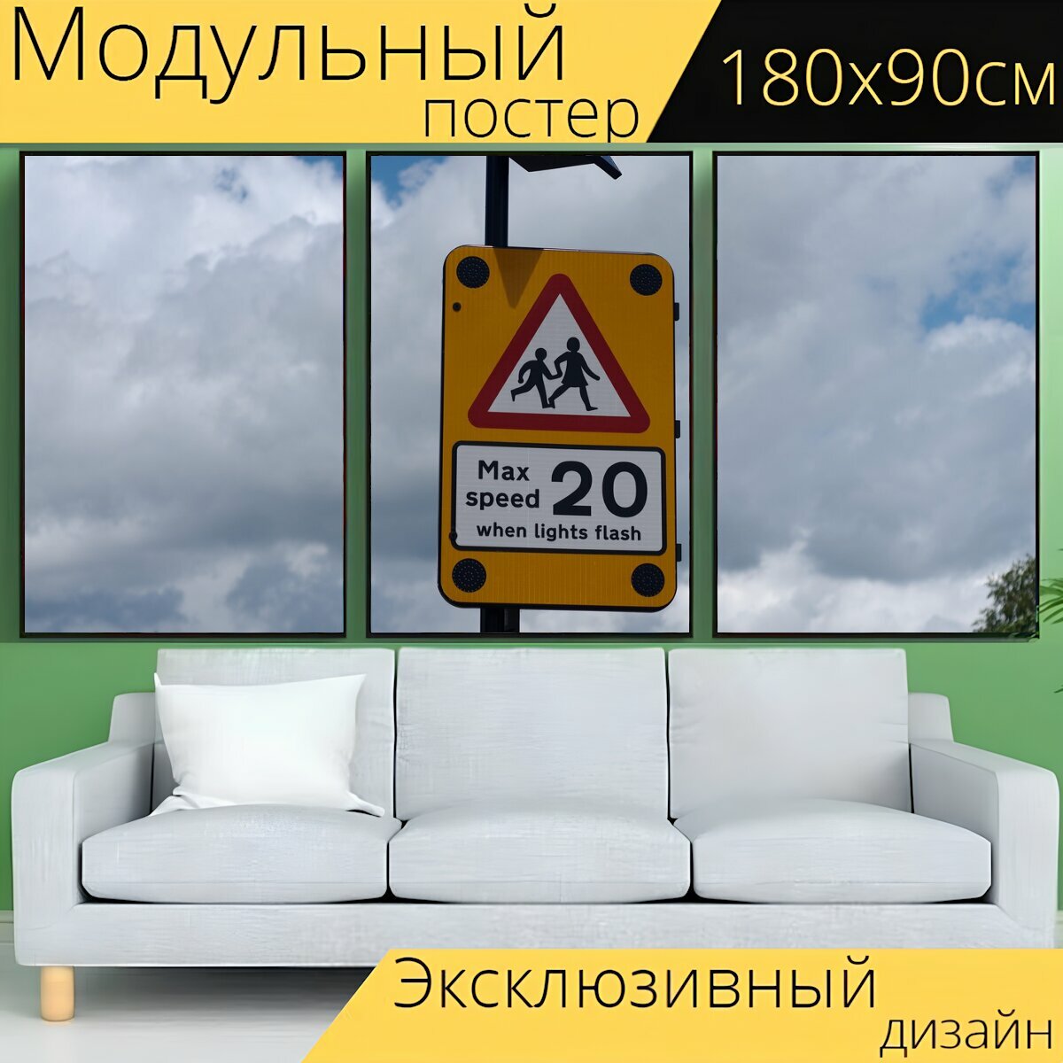 Модульный постер "Знак, ограничение скорости, дети" 180 x 90 см. для интерьера информация: