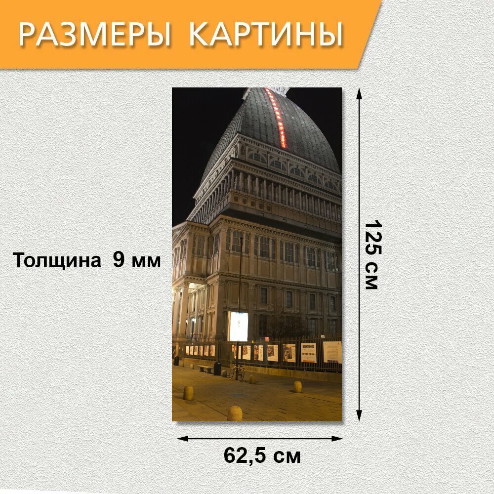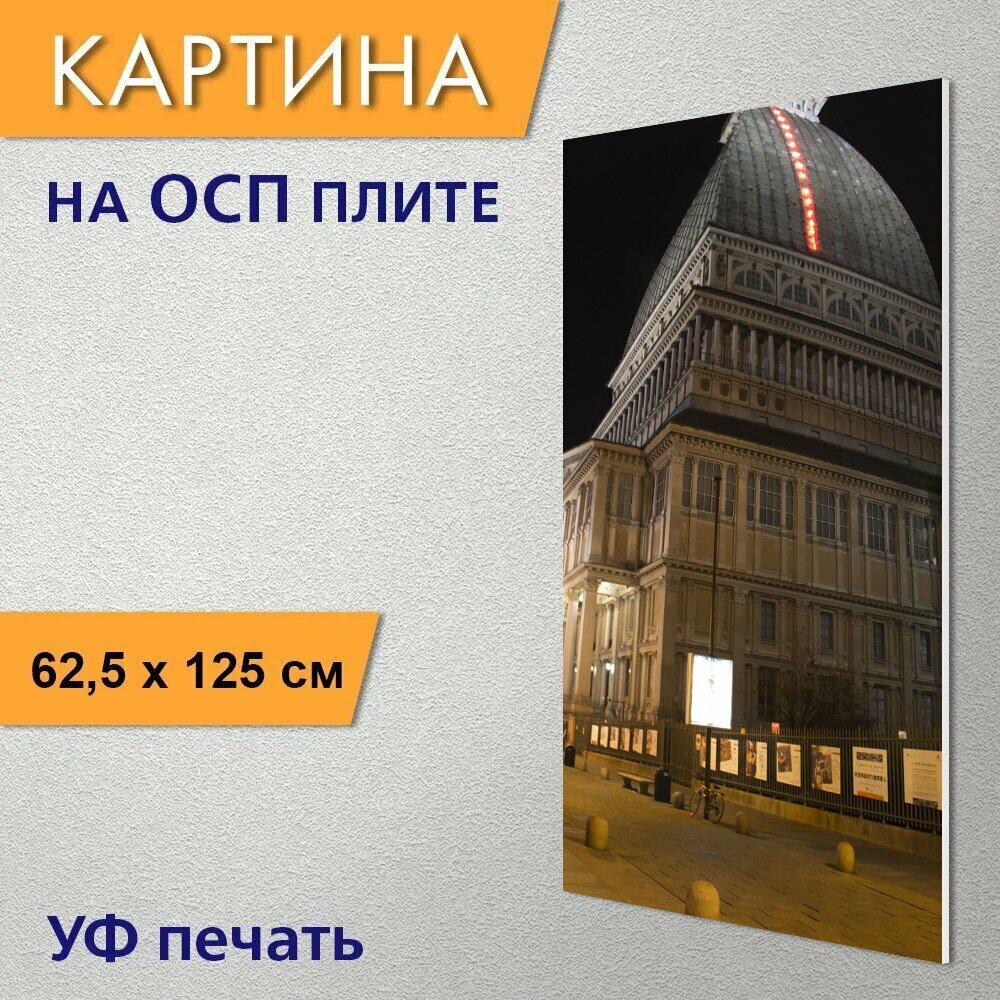 Вертикальная картина на ОСП "Моле антонеллиана, турин, ориентир" 62x125 см. для интерьериа информация: