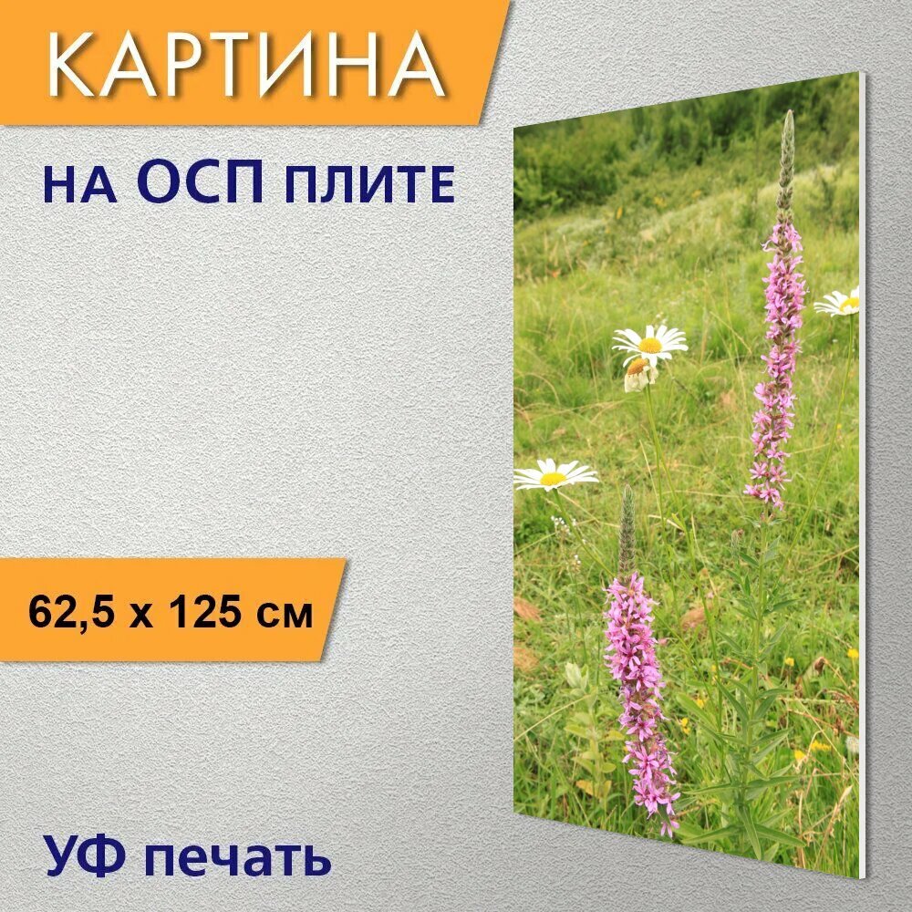 10 цен на Вертикальная картина на ОСП "Цветы, травы, вербейник" 62x125 см. для интерьериа