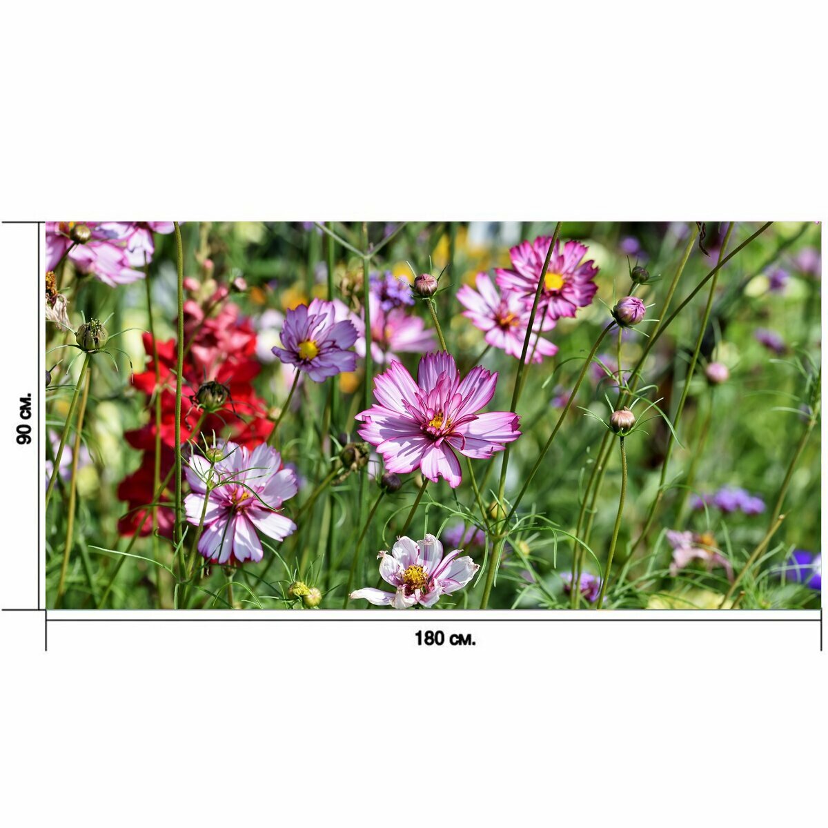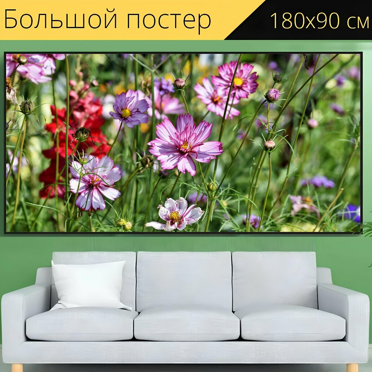 Большой постер "Космея, цветочный луг, цветок" 180 x 90 см. для интерьера информация: