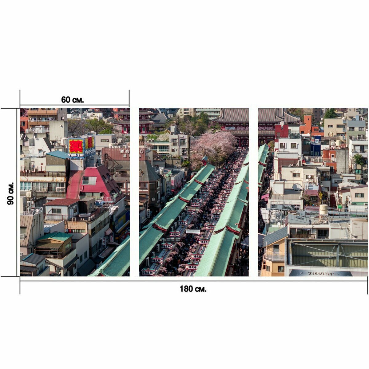 Модульный постер "Япония, токио, асакуса" 180 x 90 см. для интерьера информация: