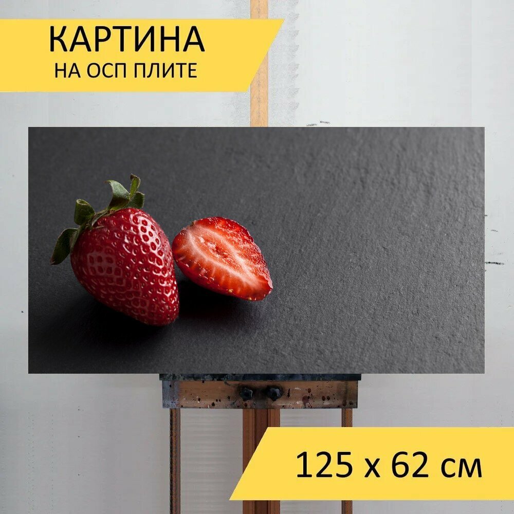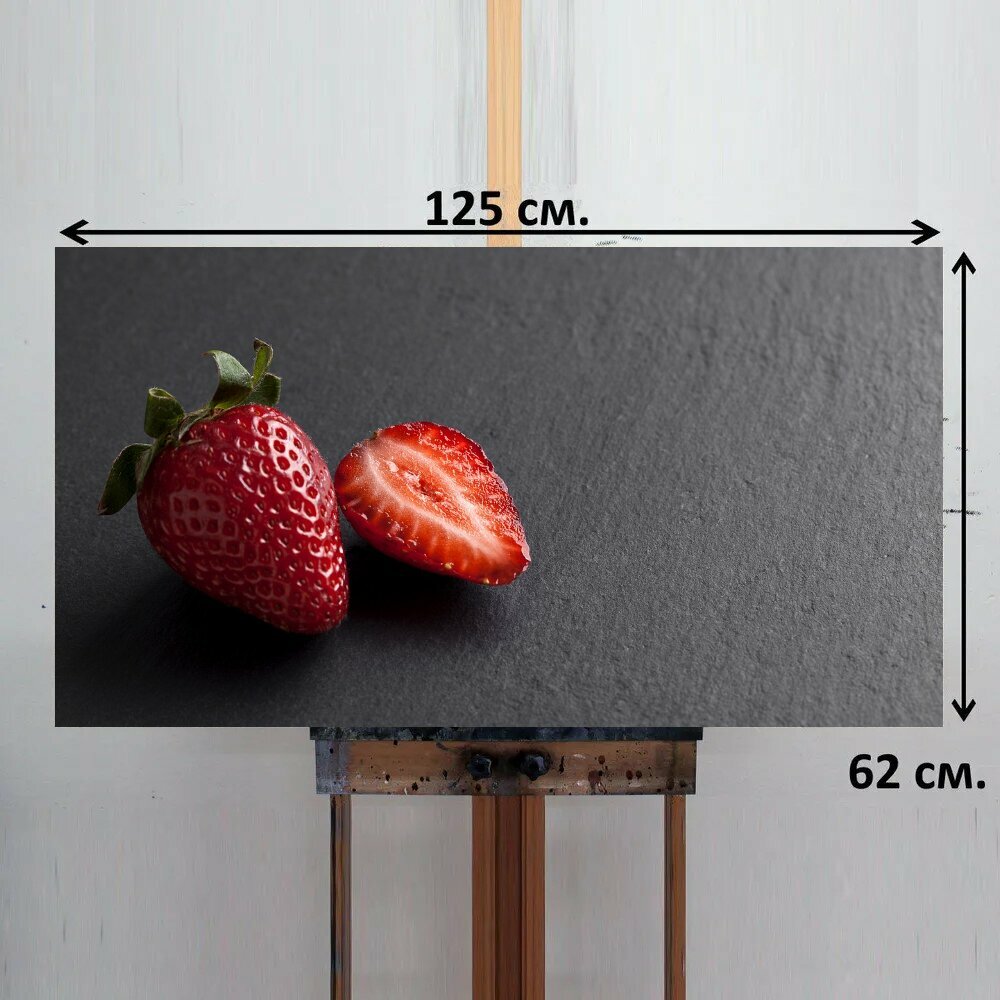 Картина на ОСП 125х62 см. "Клубника, фрукты, еда" горизонтальная, для интерьера, с креплениями информация: