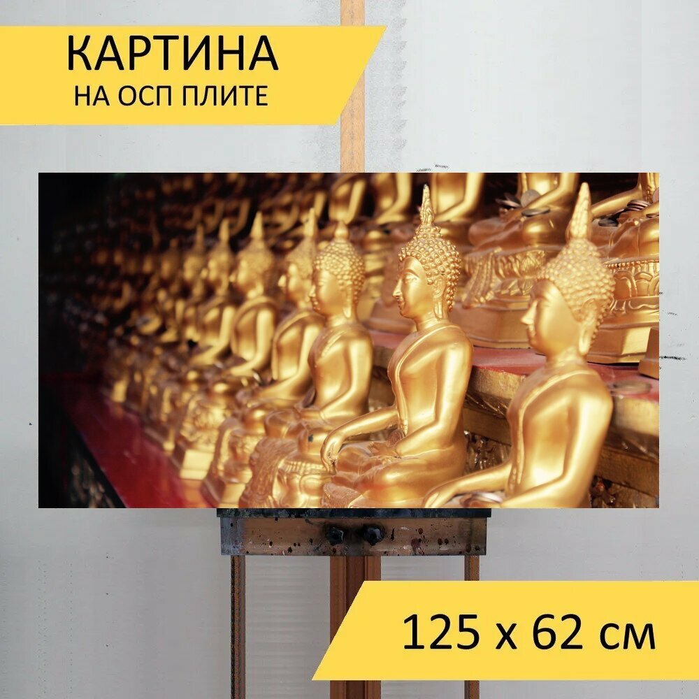 Отзывы на Картина на ОСП 125х62 см. "Бангкок, будда, золото" горизонтальная, для интерьера, с креплениями