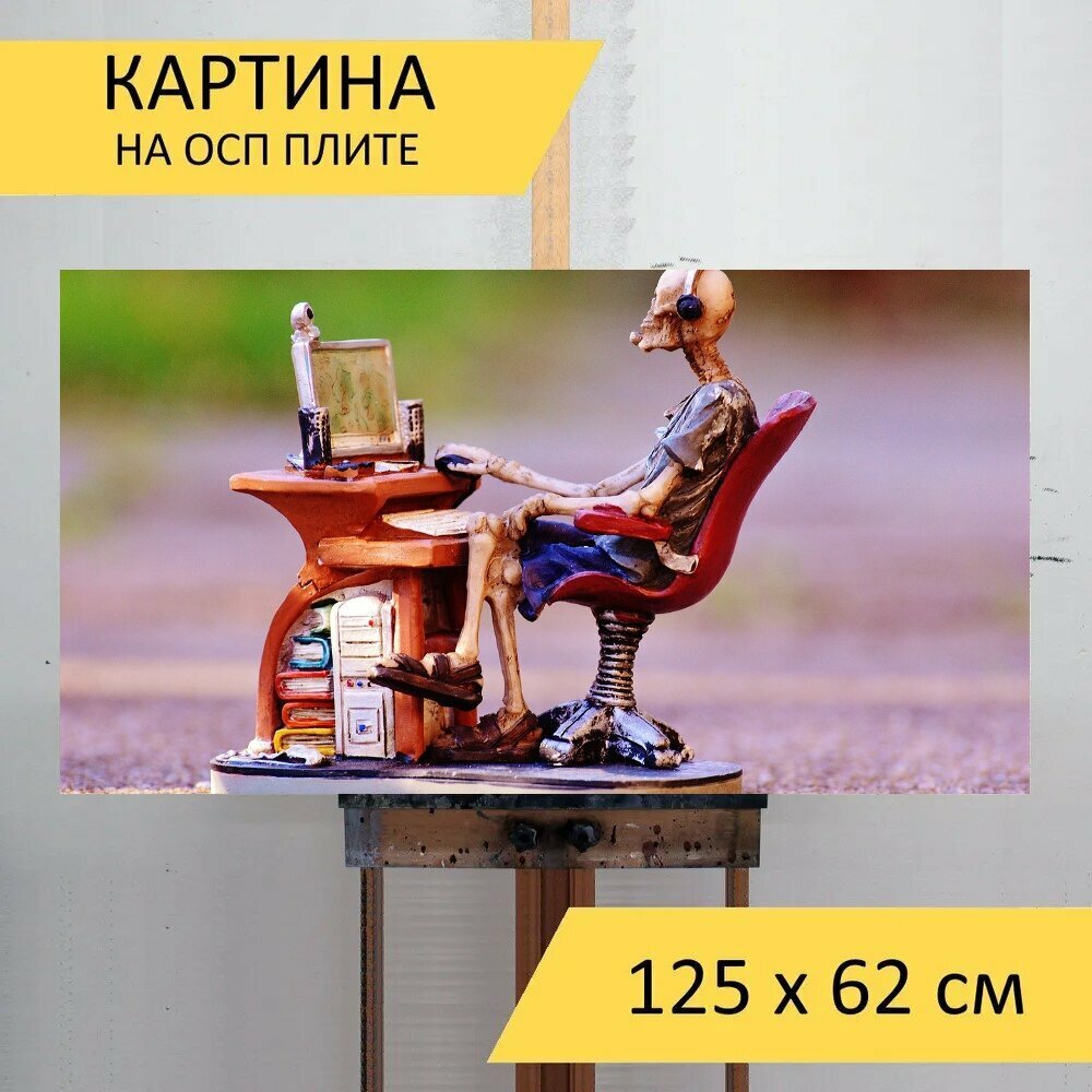 Картина на ОСП 125х62 см. "Компьютер, ищет, помощь" горизонтальная, для интерьера, с креплениями информация: