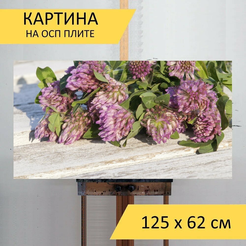 10 цен на Картина на ОСП 125х62 см. "Красный клевер, луговой завод, менопауза" горизонтальная, для интерьера, с креплениями