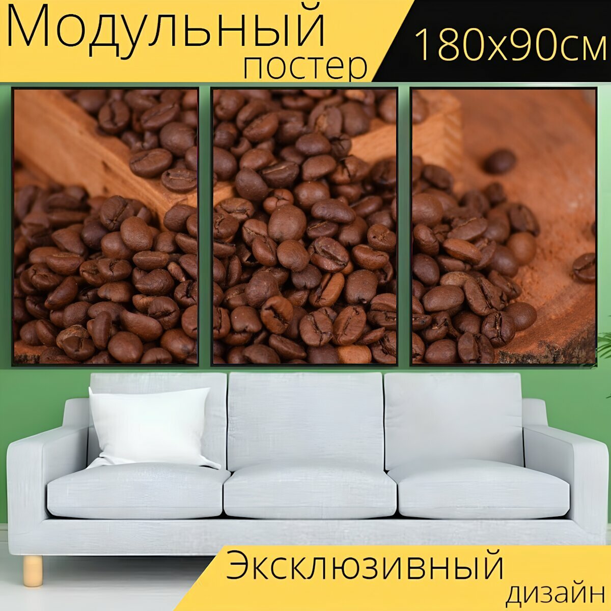 Модульный постер "Кофе, кофеин, семя" 180 x 90 см. для интерьера информация:
