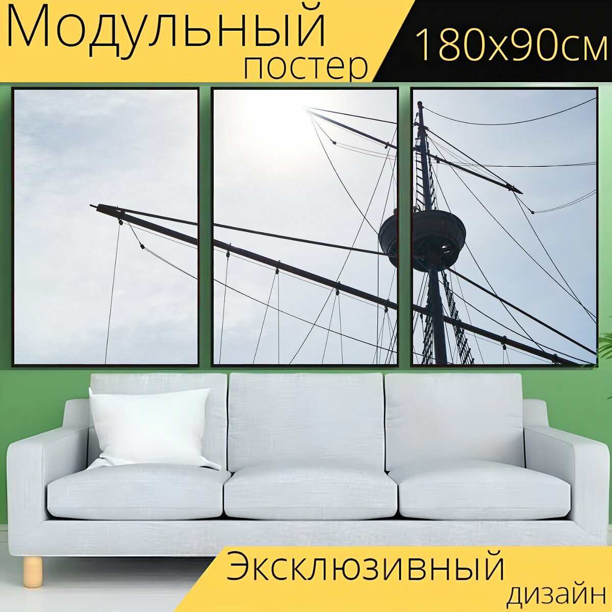 10 цен на Модульный постер "Лодка, плыть, мачты" 180 x 90 см. для интерьера