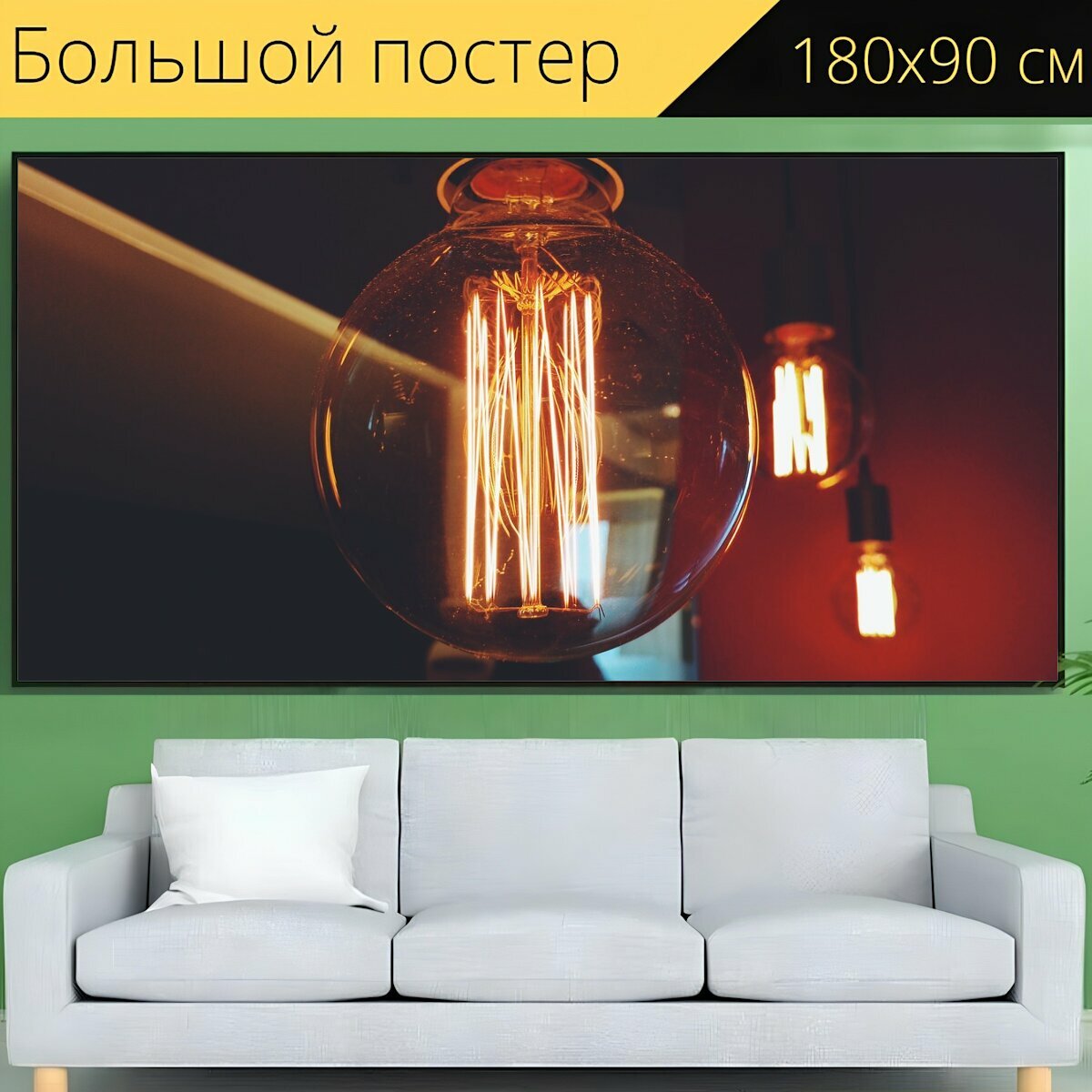 Большой постер "Свет, лампочка, искра" 180 x 90 см. для интерьера информация: