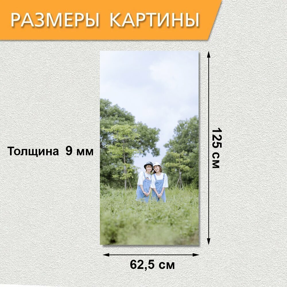 Вертикальная картина на ОСП "Лучшие друзья, девушки, луг" 62x125 см. для интерьериа информация: