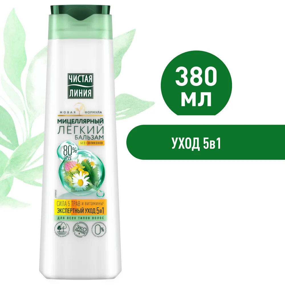 Чистая Линия бальзам-ополаскиватель Сияние и густота волос, Шелковистый блеск с экстрактом клевера 380 мл