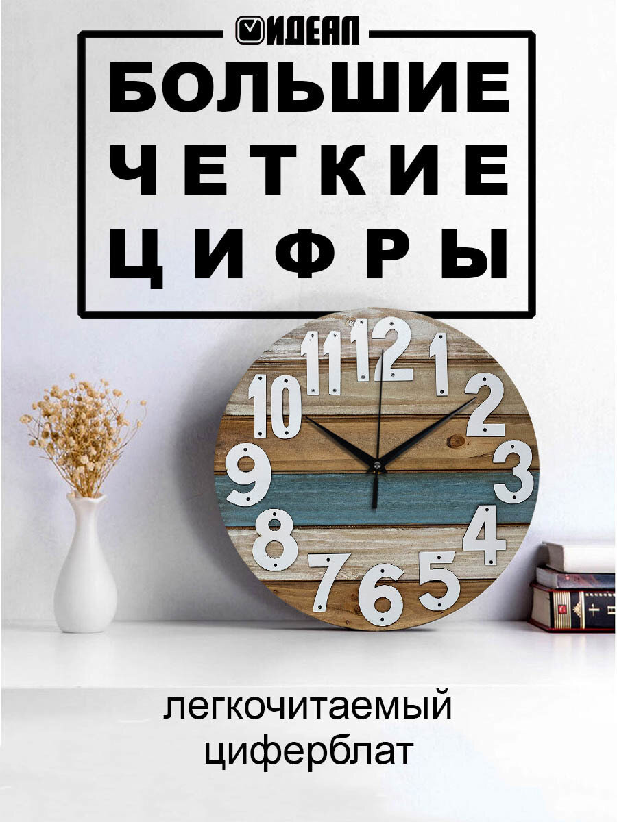 10 цен на Часы настенные деревянные бесшумные на кухню на стену "Часовой завод идеал""Прибитые цифры", 30 см, часы кухонные настенные интерьерные настенные часы