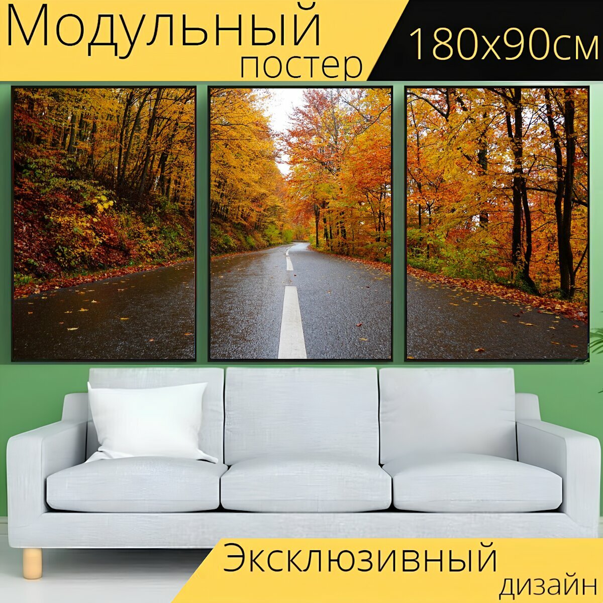 Отзывы на Модульный постер "Дорога, сельская местность, осень" 180 x 90 см. для интерьера