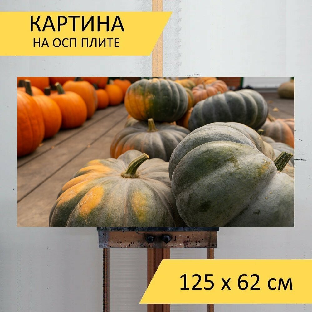 Картина на ОСП 125х62 см. "Тыква, овощи, уборка урожая" горизонтальная, для интерьера, с креплениями информация: