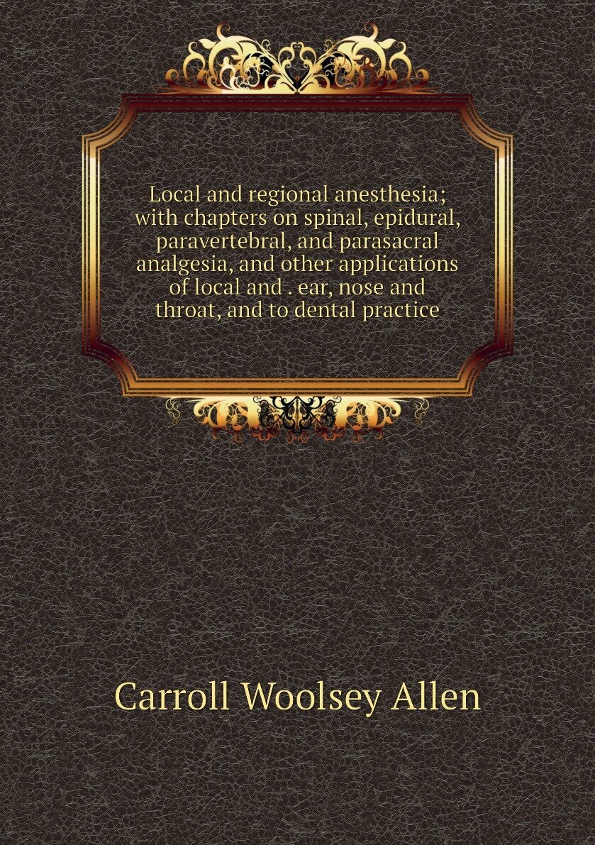 10 цен на Local and regional anesthesia; with chapters on spinal, epidural, paravertebral, and parasacral analgesia, and other applications of local and . ear, nose and throat, and to dental practice