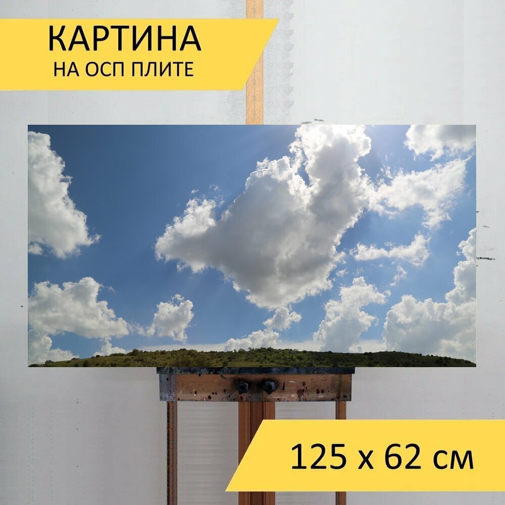 Картина на ОСП 125х62 см. "Облачно, небо, земля" горизонтальная, для интерьера, с креплениями информация: