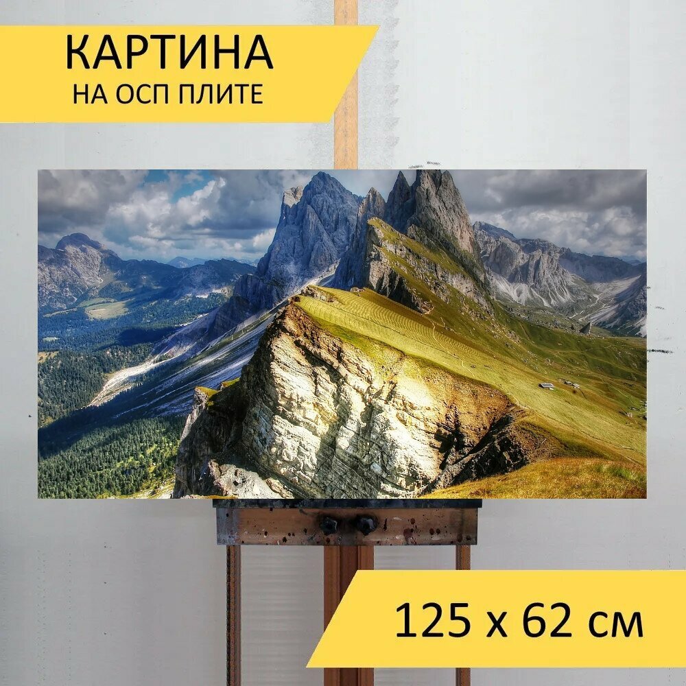 Картина на ОСП 125х62 см. "Доломиты, горы, италия" горизонтальная, для интерьера, с креплениями информация: