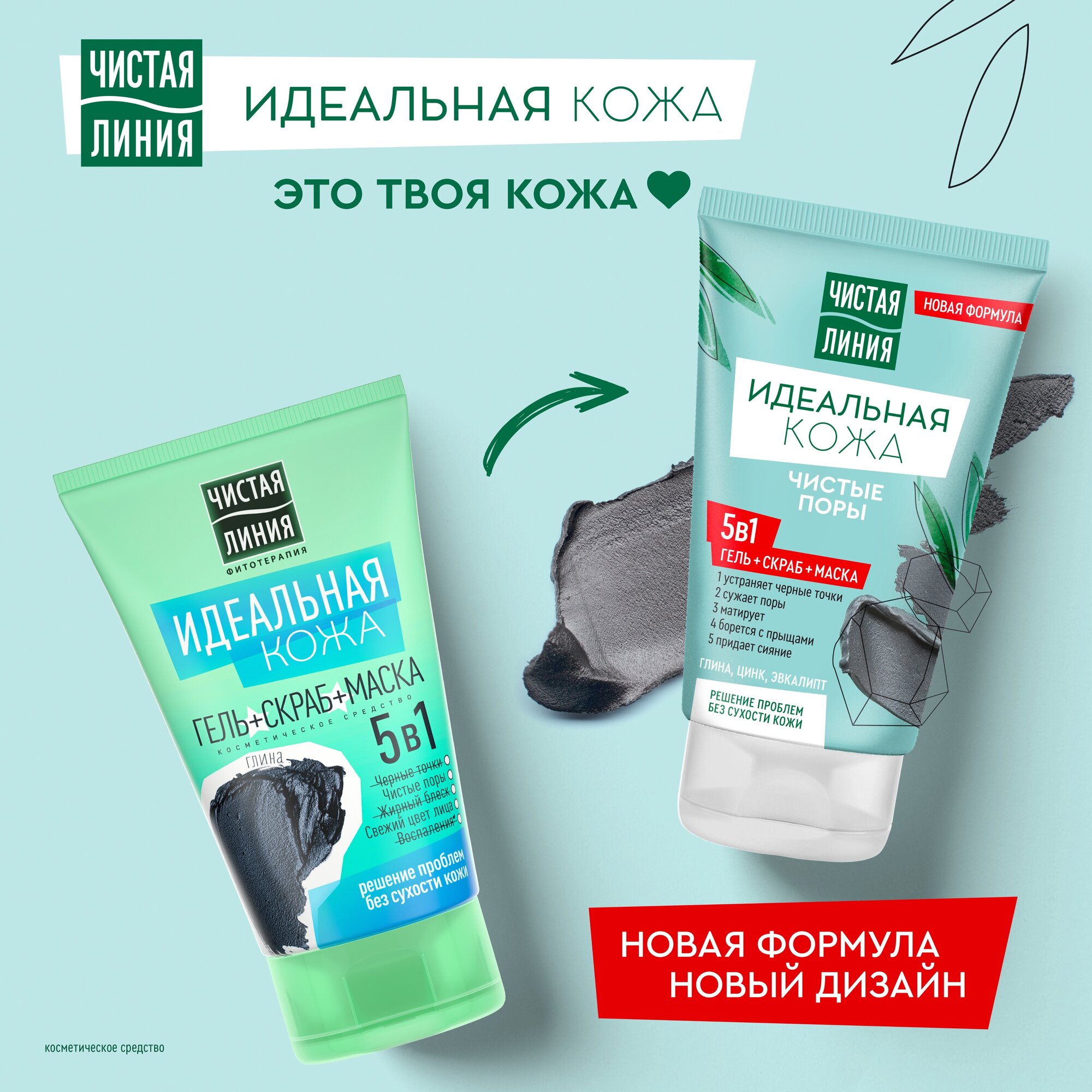 10 цен на Чистая Линия Гель+скраб+маска "Идеальная Кожа 5в1" Чистые поры с глиной и цинком 120мл