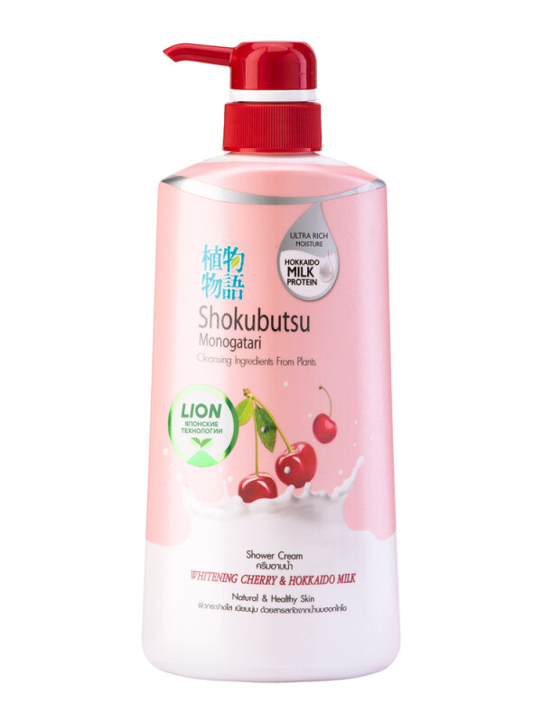 LION Thailand Shokubutsu Monogotari Крем-гель для душа «вишня с молоком» 500 мл
