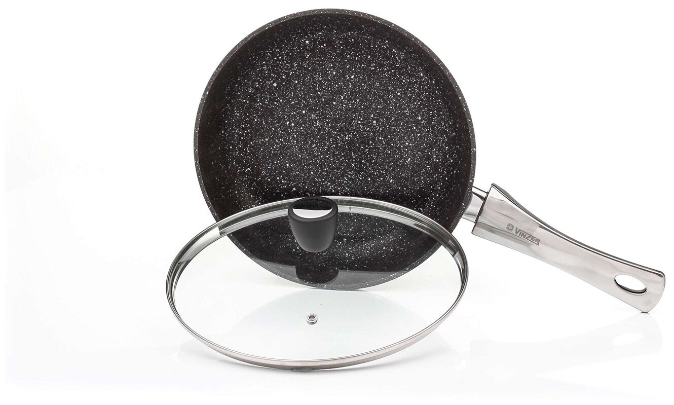 10 цен на Сковорода алюминиевая со стеклянной крышкой Vinzer Granite Induction 89435, 26 см .