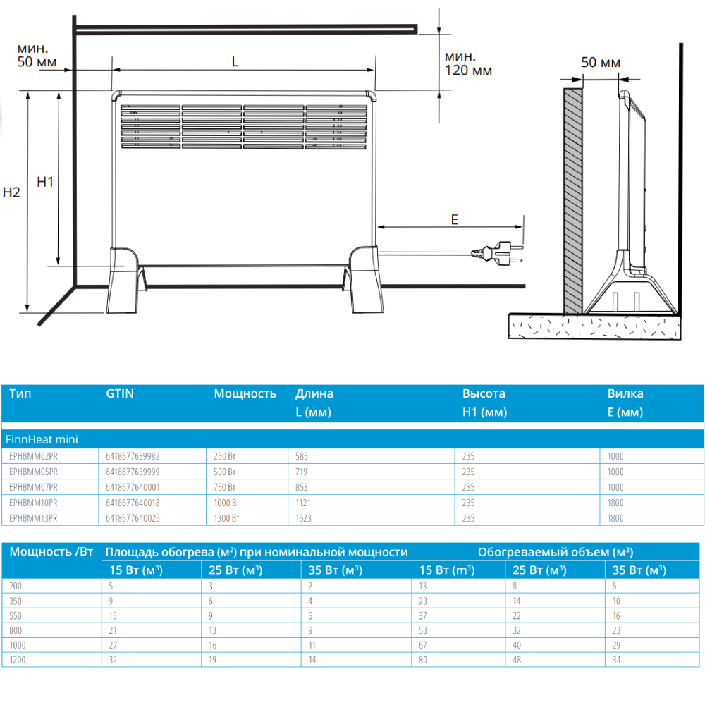 Конвектор Ensto EPHBMM13PR FinnHeat Mini