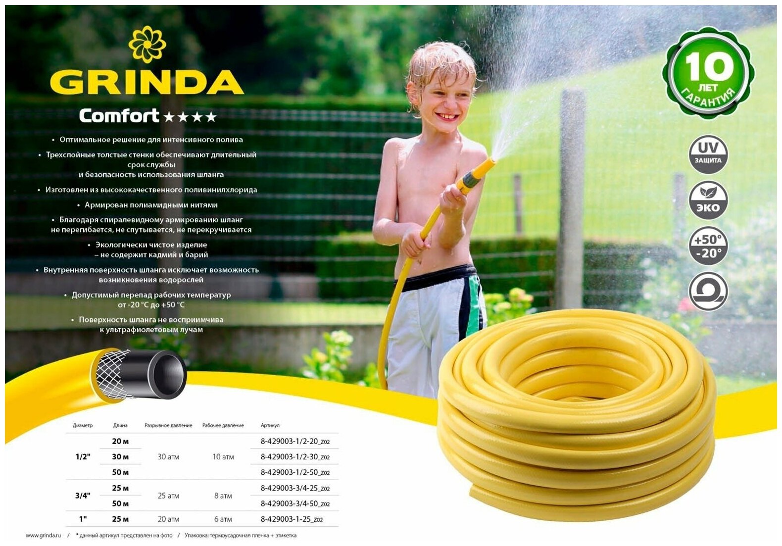 GRINDA COMFORT, 1/2″ 30 м, 30 атм, трёхслойный, армированный, поливочный шланг (8-429003-1/2-30) информация: