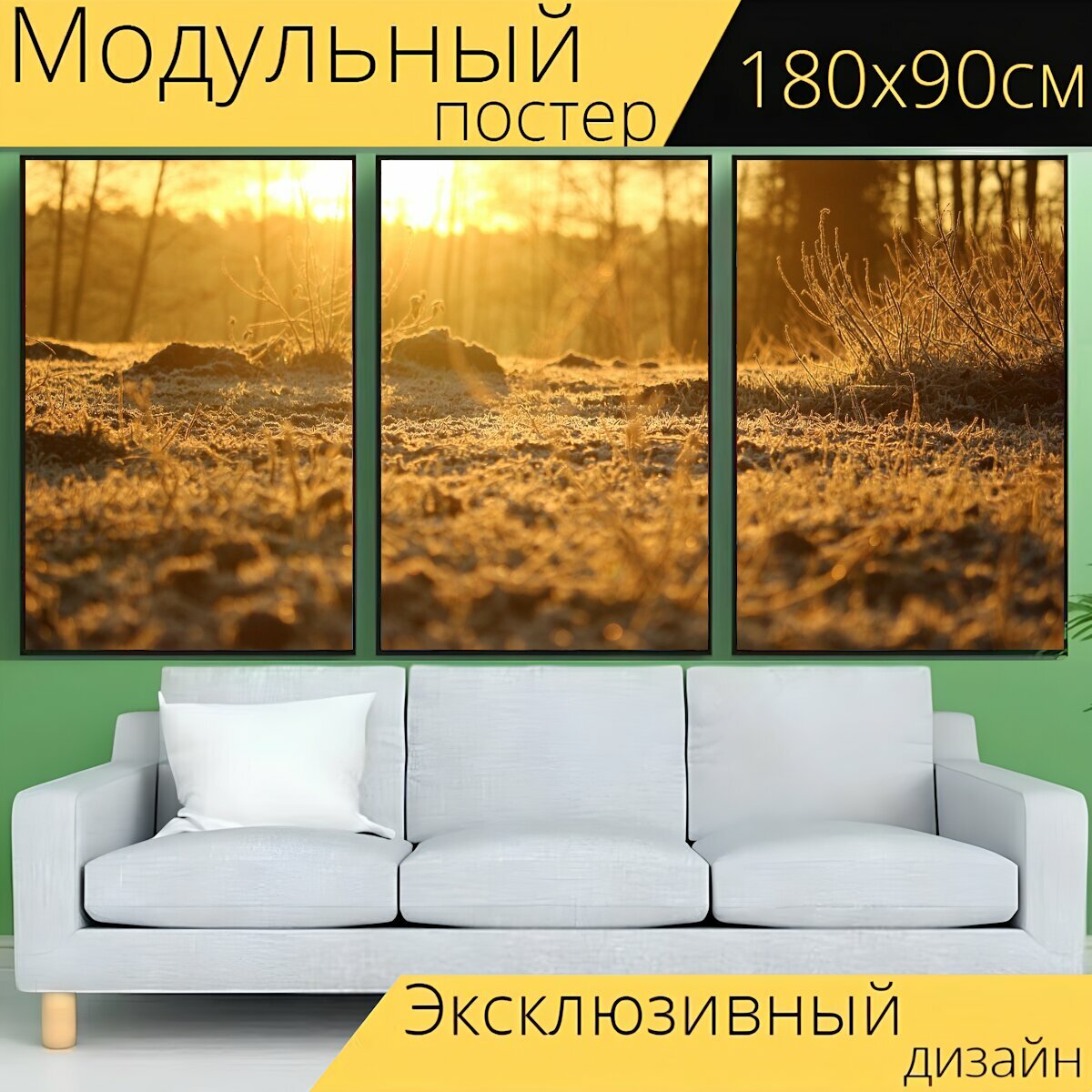 Модульный постер "Зима, завтра, восход солнца" 180 x 90 см. для интерьера информация: