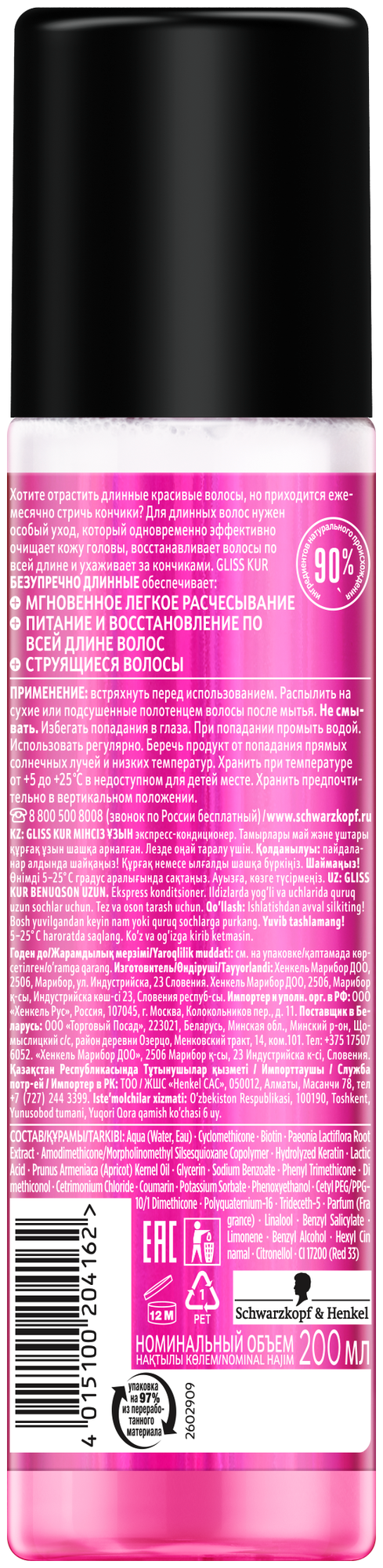 Gliss Kur несмываемый экспресс-кондиционер Безупречно длинные для длинных волос. информация: