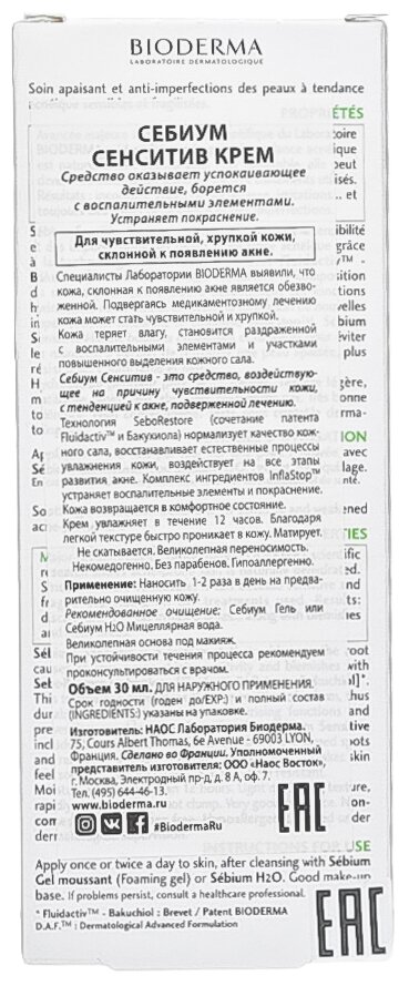 Себиум Сенситив крем 30 мл BIODERMA Sebium Sensitive Cream 30 мл информация: