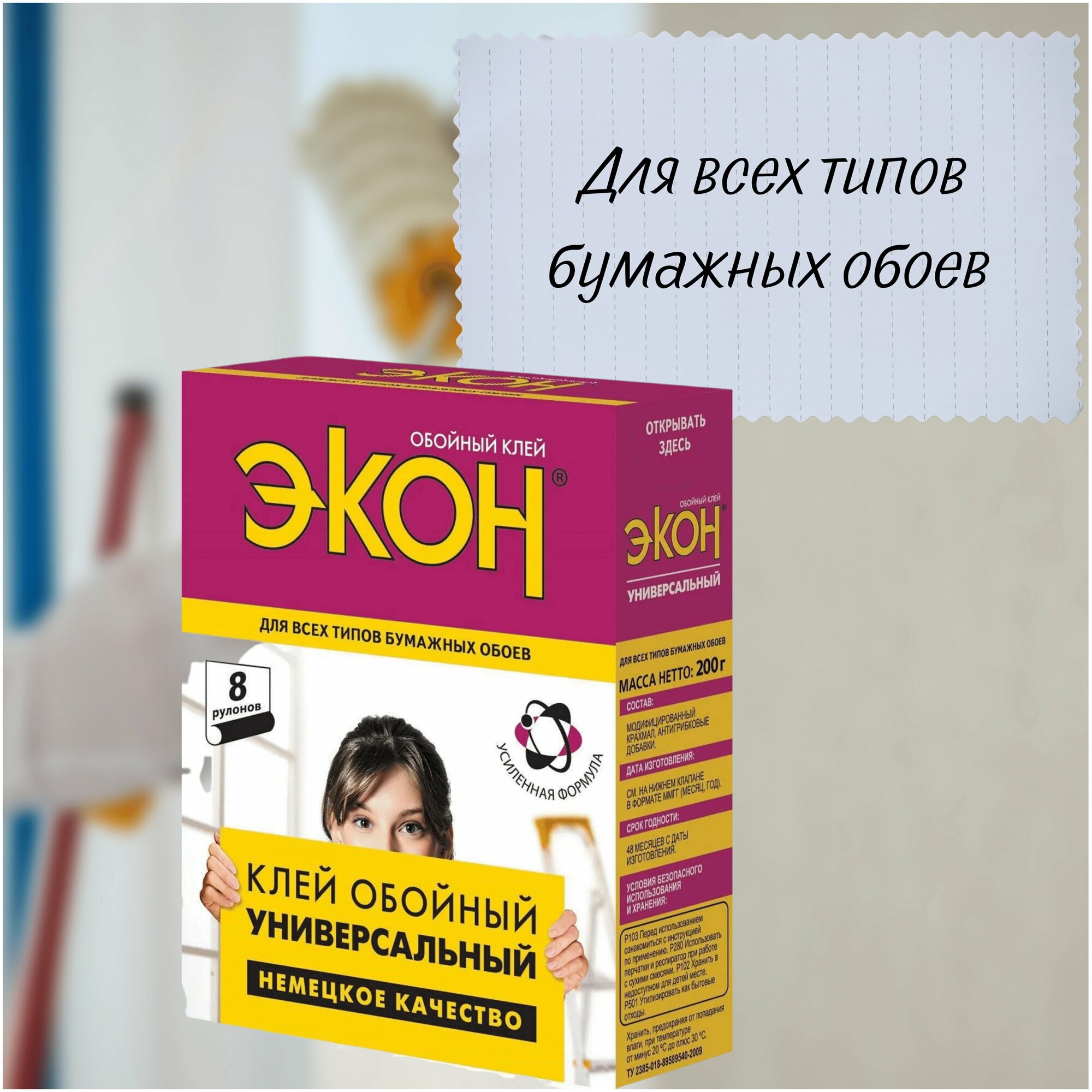 Клей для всех видов бумажных обоев Экон Универсальный 200 г