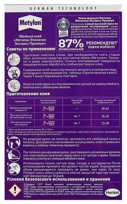 Клей для Обоев Метилан Премиум Флиз Экспресс 285ГР (18) Хенкель 2198927 .